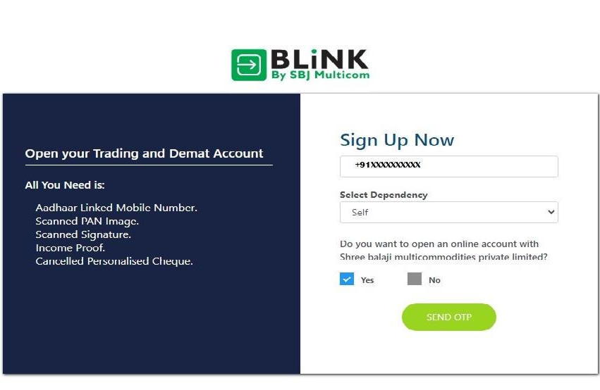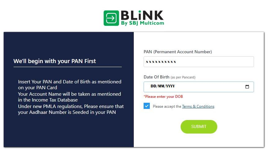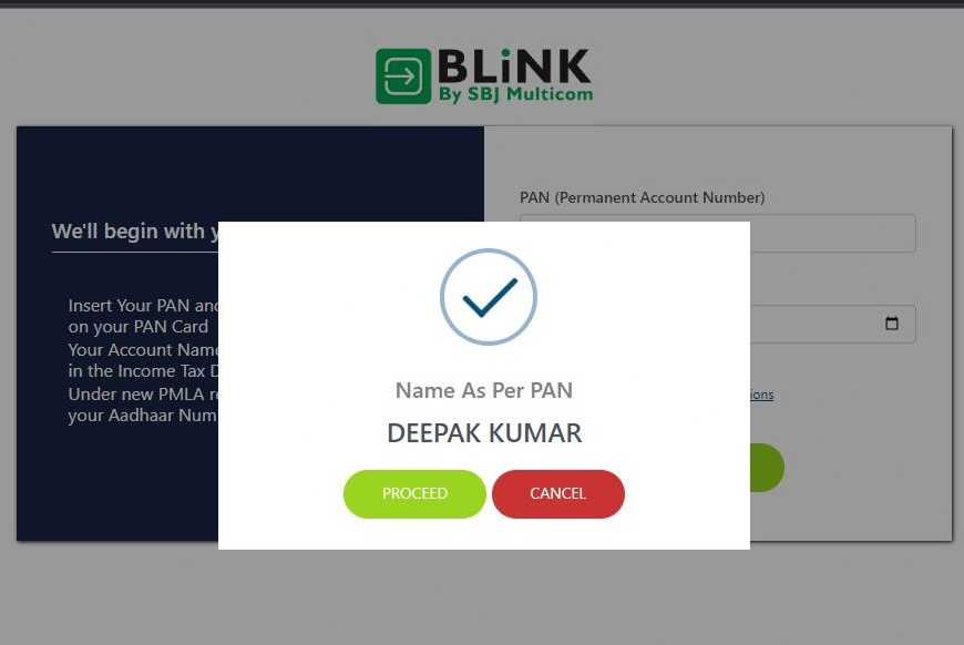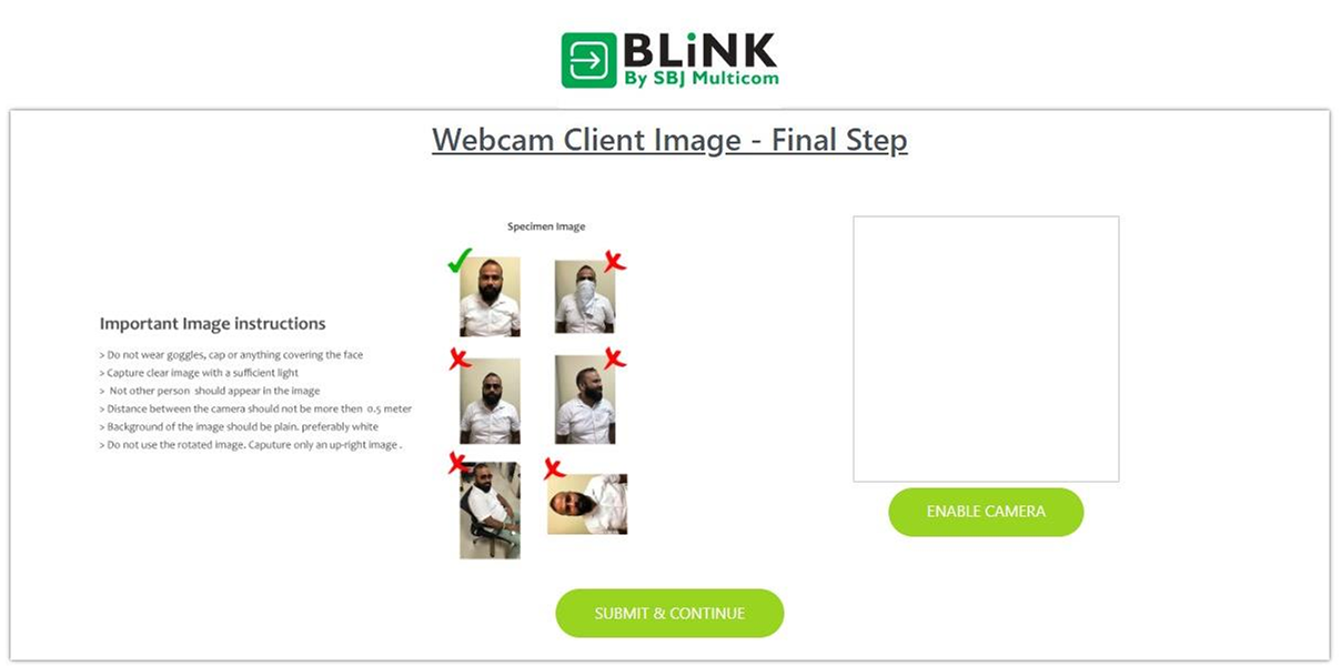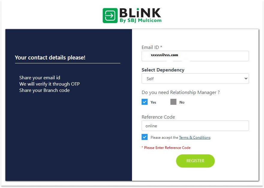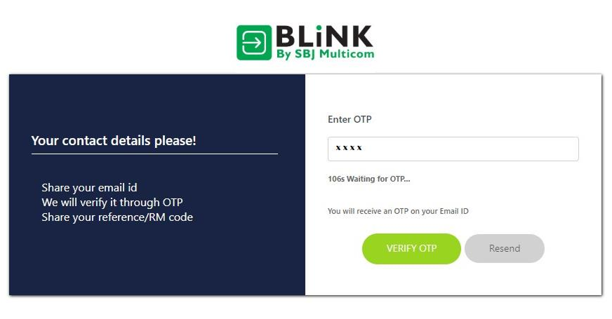 - The potential customer visits the www.sbmcpl.co.in and clicks on the Blink button on the top of the screen.