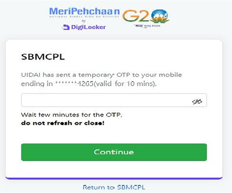 - Post click on Pay, the potential lands on Digilocker page from where they can take Aadhar details after putting their Aadhar No and Captcha and OTP.
