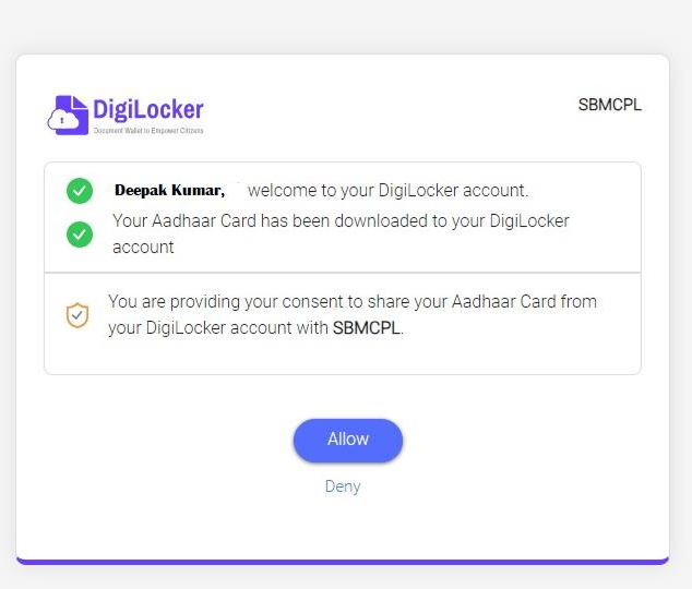 - Post click on continue the potential lands on Digilocker page with their name where they have to allow.