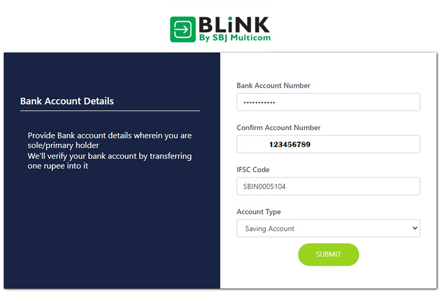 - Post click on submit the potential lands on Bank details page where they have to fill details.