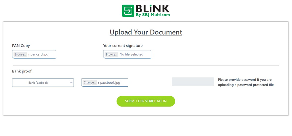 - Post click on submit the potential lands on documents upload page where they have to upload PAN, Bank proof and Sign,